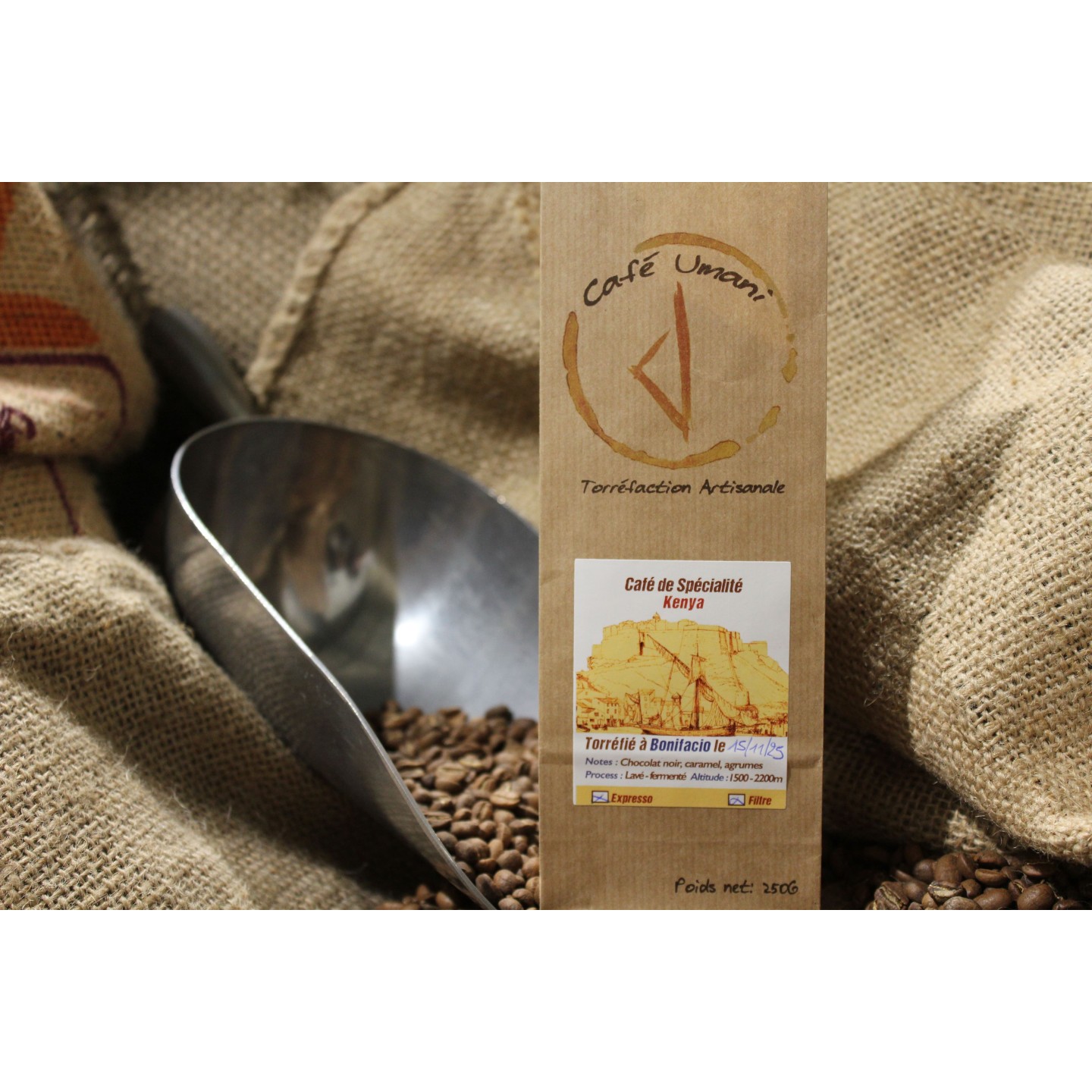 Ce café est un blend de 4 variétés de la région de Nyeri, située au nord de la capitale du Kenya. Elle est la 2ème région caféière du pays, comptant plus de 78000 familles cultivant environ 12000 hectares d'Arabica.